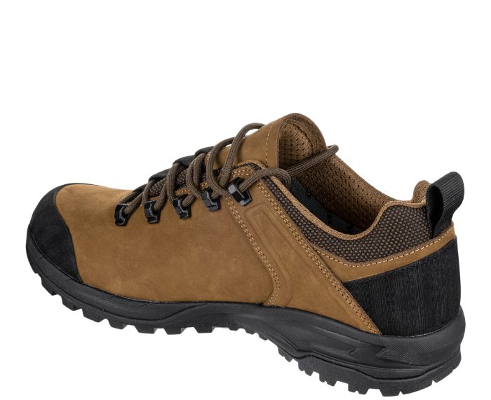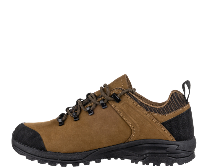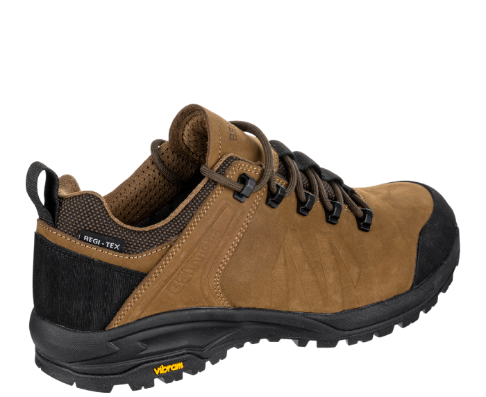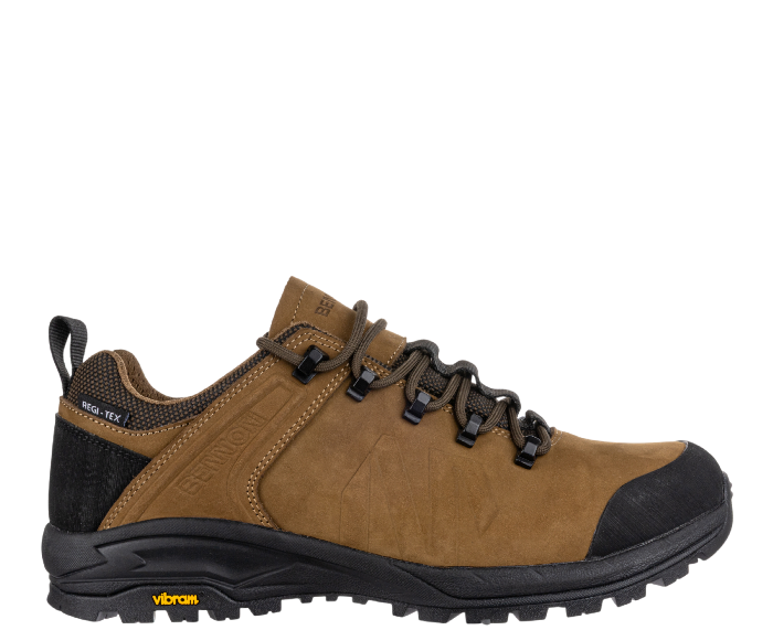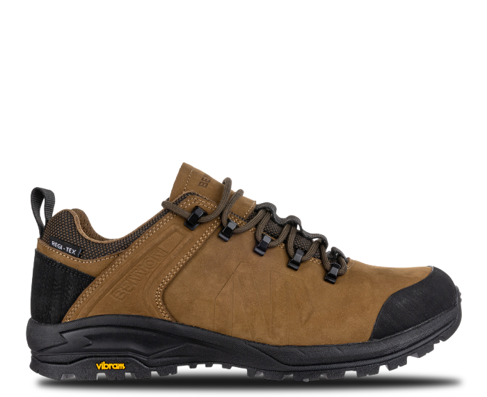 Celokožená trekingová obuv TERENNO LOW je ideální volbou pro ty, kteří hledají lehkou, univerzální a přitom stabilní obuv na treky i volnočasové aktivity. Vrchní část z kvalitní hovězinové nubukové usně s pryžovými prvky zajišťuje vysokou odolnost a ochranu před vlivy počasí i mechanickým opotřebením. Díky voděodolné membráně REGI-TEX® zůstávají vaše nohy v suchu i při dešti nebo vlhkém terénu. Vnitřní síťovaná podšívka MESH podporuje prodyšnost, zatímco stélka ABSORBA XTR efektivně tlumí nárazy a přináší pohodlí i při celodenním nošení. Podešev Vibram® S3018 s kombinací EVA a pryže poskytuje spolehlivou trakci a stabilitu na členitém povrchu, takže zvládnete každý krok s jistotou. Nízké provedení obuvi nabízí větší volnost kotníku a ideální flexibilitu pro rychlejší pohyb nebo každodenní výlety.