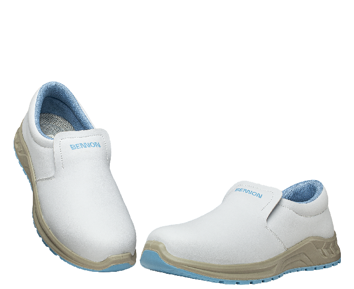 Bílá, dobře omyvatelná, antistatická obuv.